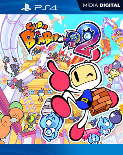 SUPER BOMBERMAN R 2 é um jogo de ação e estratégia da Konami, com multiplayer local e online. Traz o clássico estilo de colocar bombas para derrotar inimigos, além de novidades como o modo “Castle”, editor de fases e batalhas para até 64 jogadores. É ideal para quem busca diversão rápida e competitiva com amigos.